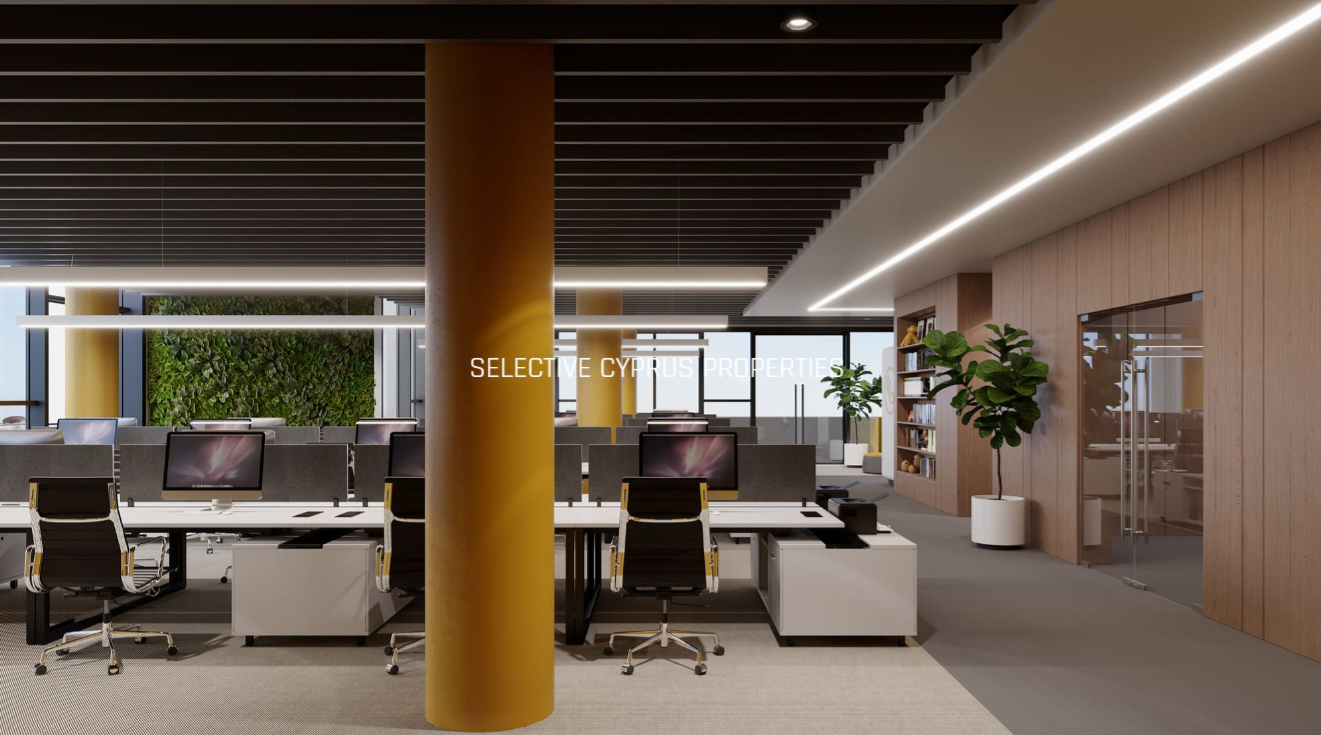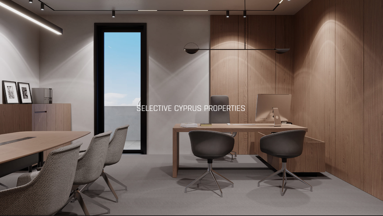 The property features underground parking, a stylish reception area, individual storage rooms, and a spacious showroom with a mezzanine opening onto one of Limassol’s main streets.